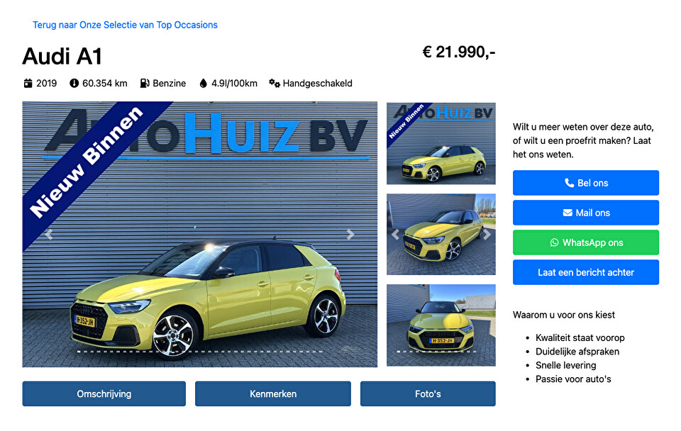 Maak een categorie aan en selecteer de cars template.