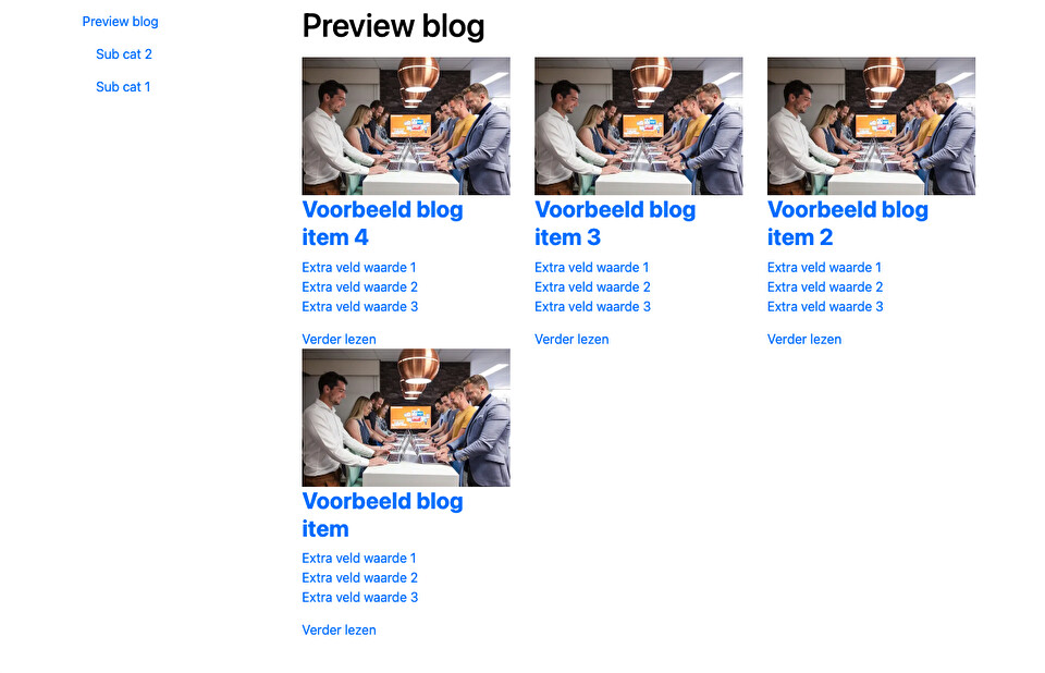 In de catalogus view is het mogelijk om producten uit te lichten, met een bestel/offerte aanvragen formulier.