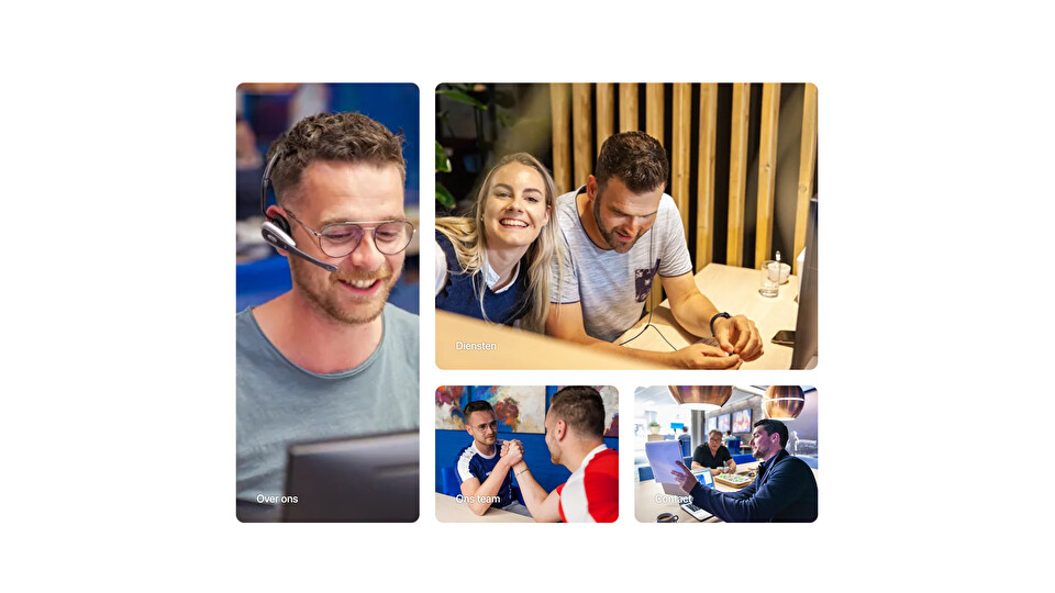 V228-03Geeft de image carousel weer als opgedeelde panelen. De layout wordt automatisch zo goed mogelijk weggezet. Standaard is er ondersteuning tot 6 fotos. Links zullen automatisch over de hele foto gezet worden. Op mobiel zullen de foto's onder elkaar gezet worden met als maximum twee naast elkaar.