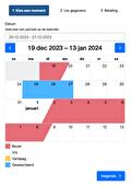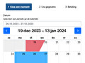 V264-01Toont de inhoud van het formulier verdeeld in stappen. De kalender staat altijd op de eerste stap en het totaal aan transacties op de laatste. Daar buiten om is de inhoud van iedere stap door de webbouwer zelf te bepalen.