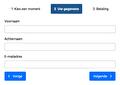 HTML<reservation-form name="fiets" view="wizard"> <div data-title="Kies een moment"></div> <div data-title="Uw gegevens"> [...] </div> <div data-title="Betaling"></div> </reservation-form>