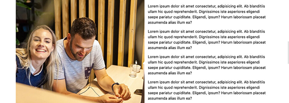 HTML<div class="stretch-left-clamp-right"> <nc-image name="image" width="960"></nc-image> <nc-text name="text"></nc-text> </div> <!-- Reverse the order by applying a column reverse below medium width. --> <div class="stretch-left-clamp-right flex-column-reverse flex-md-row"> <nc-image name="image" width="960"></nc-image> <nc-text name="text"></nc-text> </div>