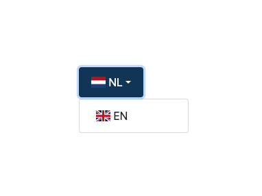 V245-03Taalkeuze dat een dropdown bevat, maar in plaats van alle opties tonen geeft deze alleen andere weer en is de inhoud van de knop de huidige taal.